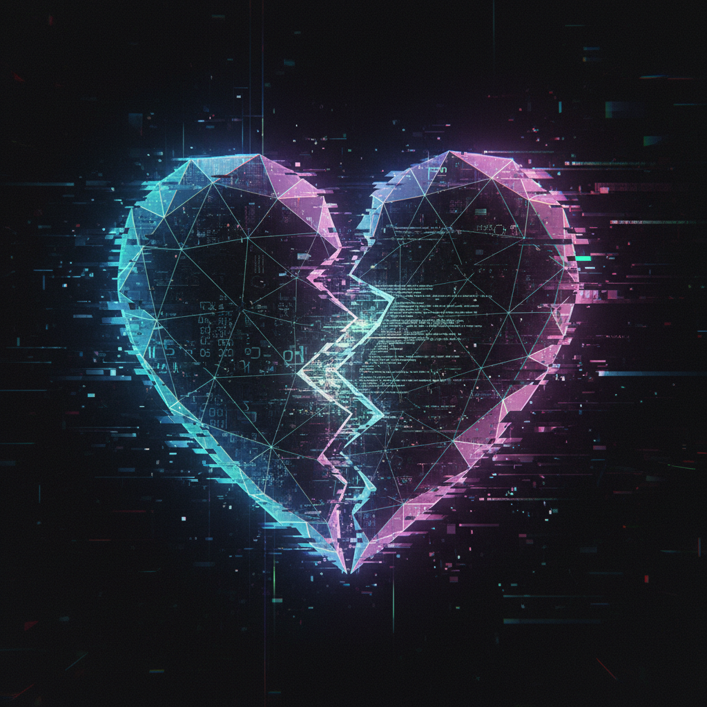 Alt: Digital heartbreak, AI gone wrong, symbolizing risks of relying blindly on technology for relationship support