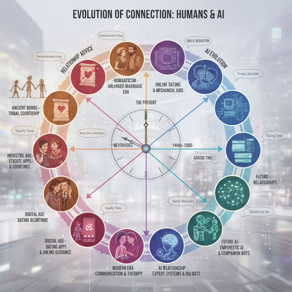 The evolution of relationship advice is a study in technological and cultural shifts. We’ve moved from handwritten agony aunt queries, to magazine columns, to blog posts, and now to AI-driven chatbots like amante.ai. Here’s a quick-and-dirty timeline: