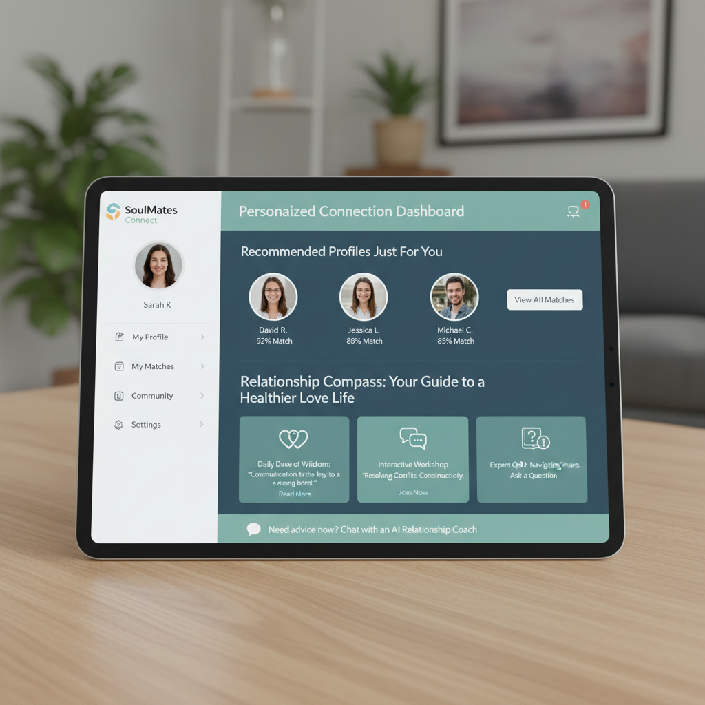Alt: Online relationship advice dashboard with personalized recommendations tailored to the user's needs and history.