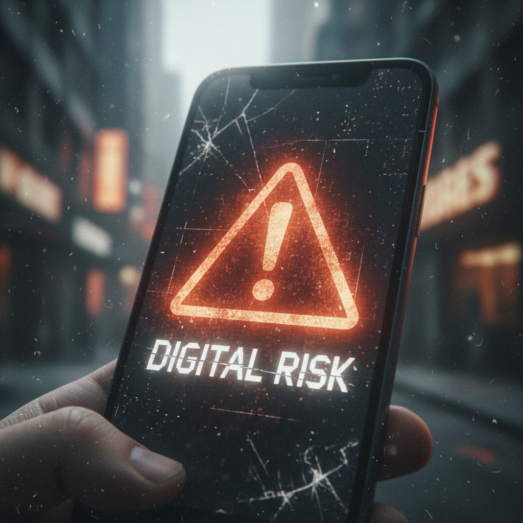Alt text: Warning icon displayed on phone screen, illustrating digital risks of online relationship resources
