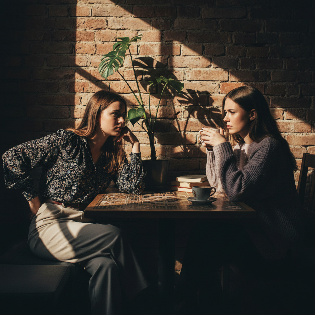 Alt: Friends emotionally distant after argument, strained body language, failed advice visible in mood