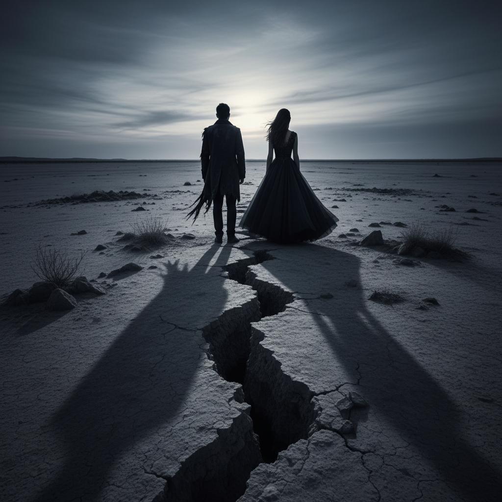 Symbolic image of a couple facing away from each other, separated by a shadowy line, illustrating relationship stress overload.