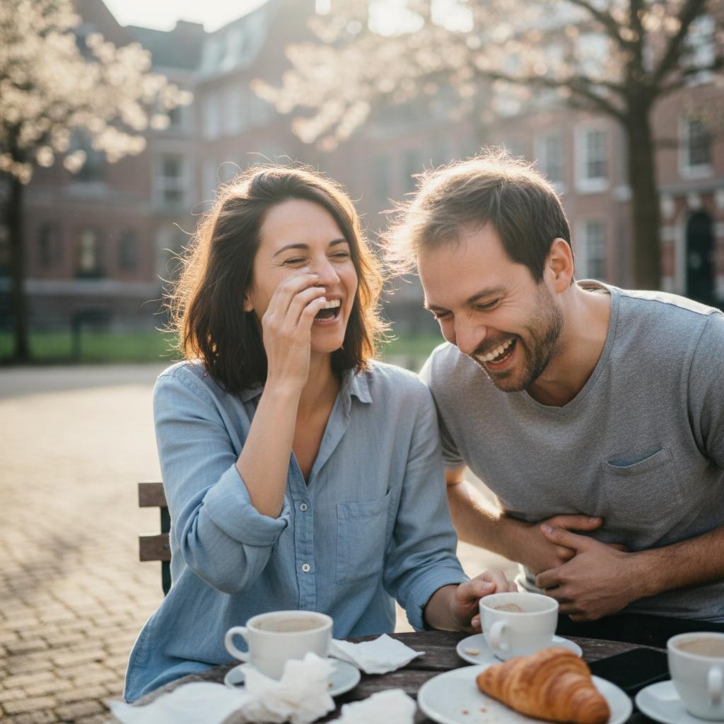 Documentary-style photo of a couple laughing post-argument. Alt: Authentic connection after tough conversations.